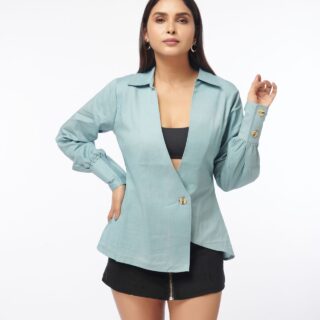 Amp up your wardrobe with this must have top. Featuring a crisp linen blend fabric, asymmetric shape and front button, team with a smart skirt for that perfect combo.