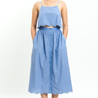 We are obsessing over this Cami top, with attention to detail, and the perfect broderie fabric, this is just what your wardrobe needs. Pair with the matching broderie skirt, for the perfect outfit of the day.