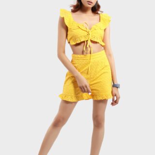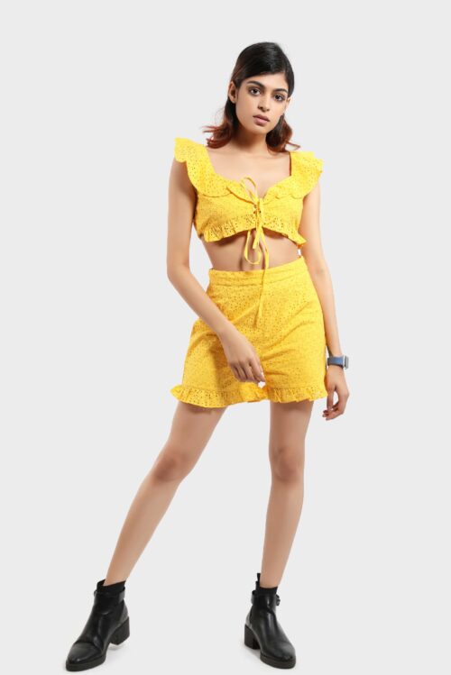 Nail the broderie trend with these broderie frill hem shorts. Featuring frill details on the hem, team with matching broderie frill top and make it the ultimate co-ord.