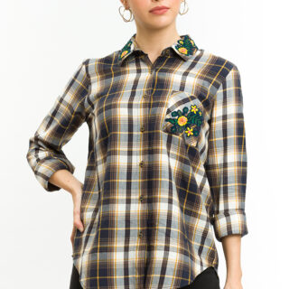 Check Shirt With Applique Embroidery Design
