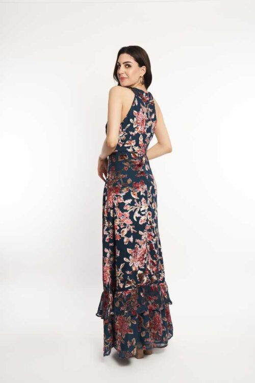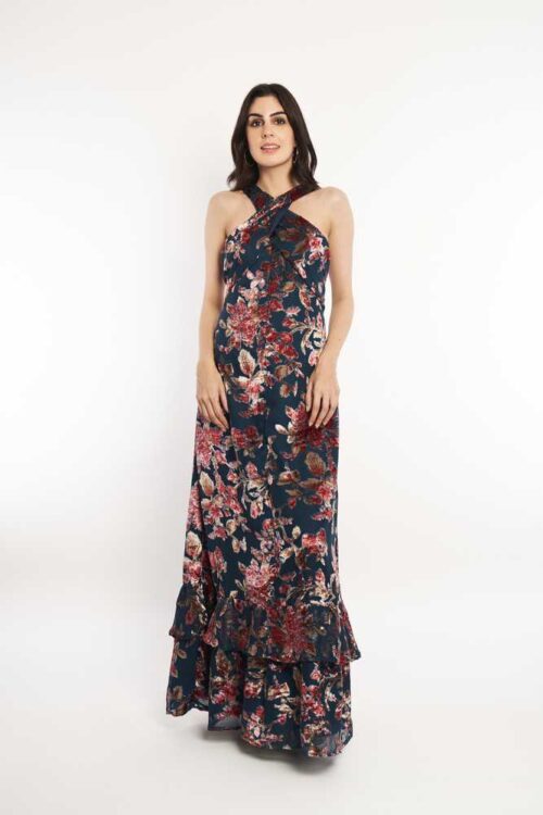 Cross Neck Velvet Maxi Dress