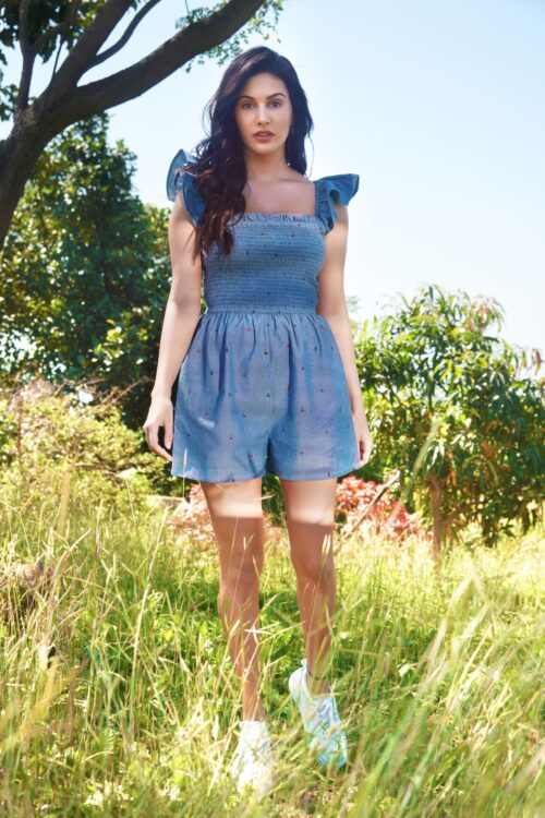 Add a chic update with this denim playsuit. Featuring a chambray fabric, frill shoulder details and a comfort fit, pair with sneakers for that casual vibe.