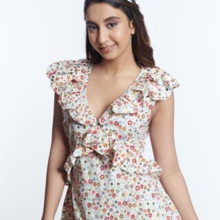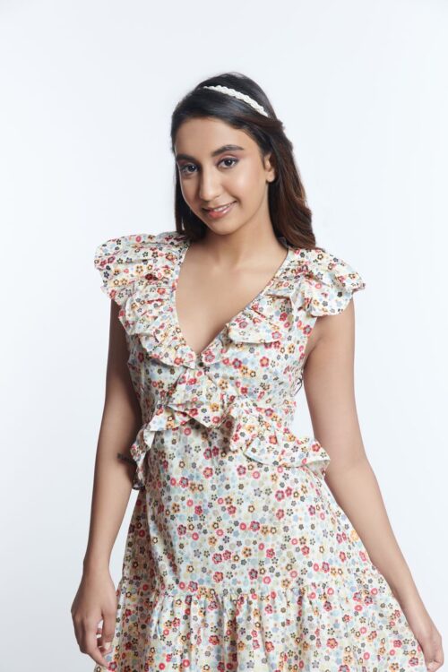 Elevate your every day wardrobe with our ditsy printed dress. Featuring a floral printed design, and intricate design details, match this with stilettos to complete the look.