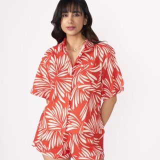 Add some chic vacay vibes to your wardrobe with these printed linen shorts. Featuring a comfort fit and pretty red print, pair with the matching shirt for that perfect vacay vibe.