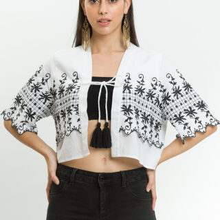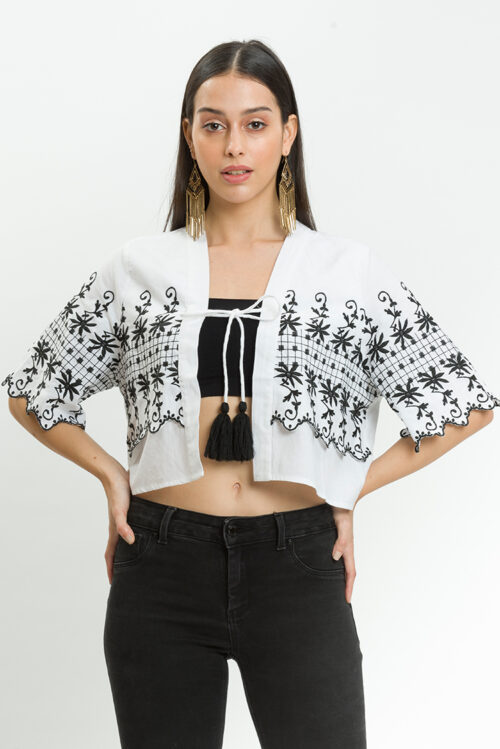Got a thing that requires jeans and a nice top? We got you covered, with this white embroidered crop top with tassel detail, style this with wash jeans and strappy heels for a look we are loving.