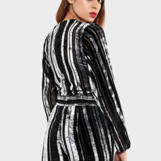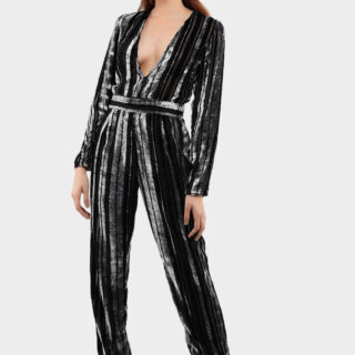 Add the Oomph and get Party ready with our Velvet Mono Stripe Jumpsuit, featuring a soft velvet fabric and a gorgeous stripe design, team with heels and be ready to head out.